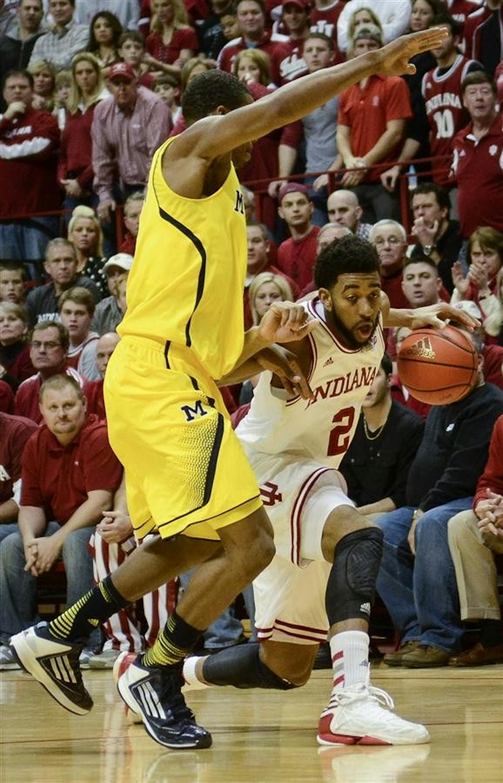 Senior forward Christian Watford attempts to keep possesion of the ball during the Hoosiers' 81-73 win against Michigan on Saturday at Assembly Hall.