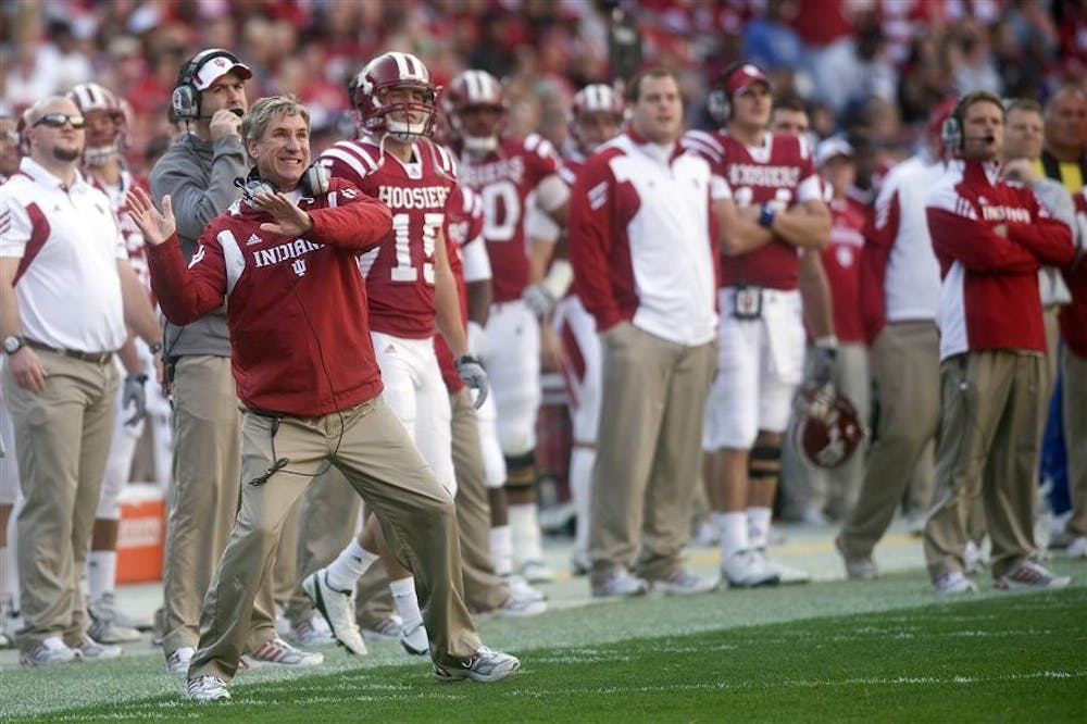 IU coach Bill Lynch reacts as Penn State kicks a field goal during IU's 41-24 loss to the Nittany Lions on Saturday at Fedex Field in Landover, Md. Peter Stevenson