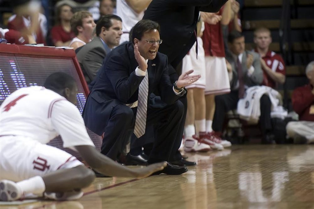 IU coach Tom Crean encourages his players during the first half of their game against Wright State on Sunday at Assembly Hall. Peter Stevenson