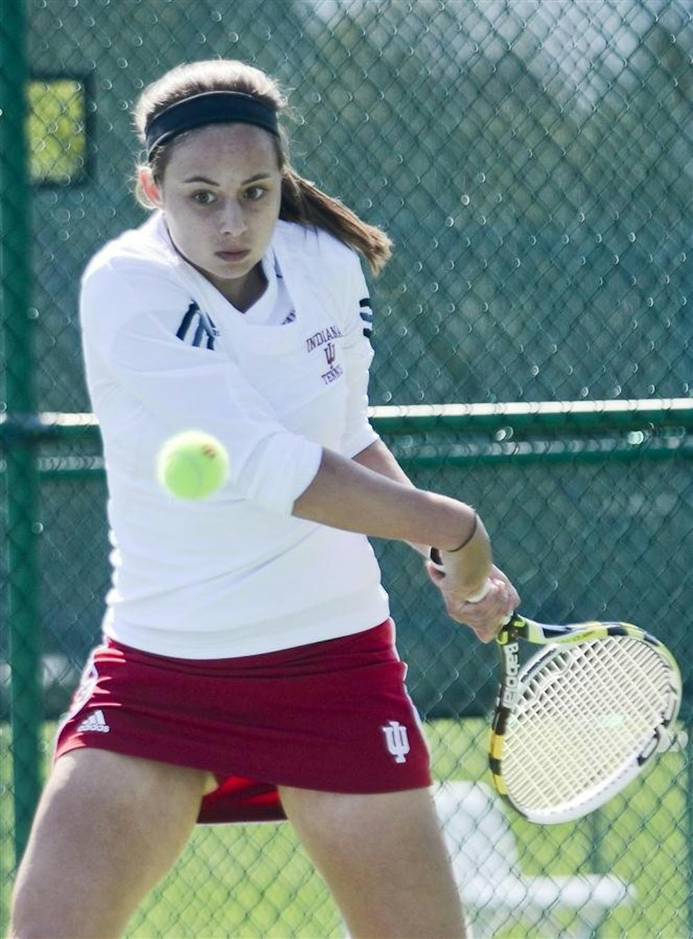 Freshman Shannon Murdy prepares to return the ball during the Hoosiers' 5-2 loss to Nebraska on Sunday at the IU Tennis Center. Steph Langan