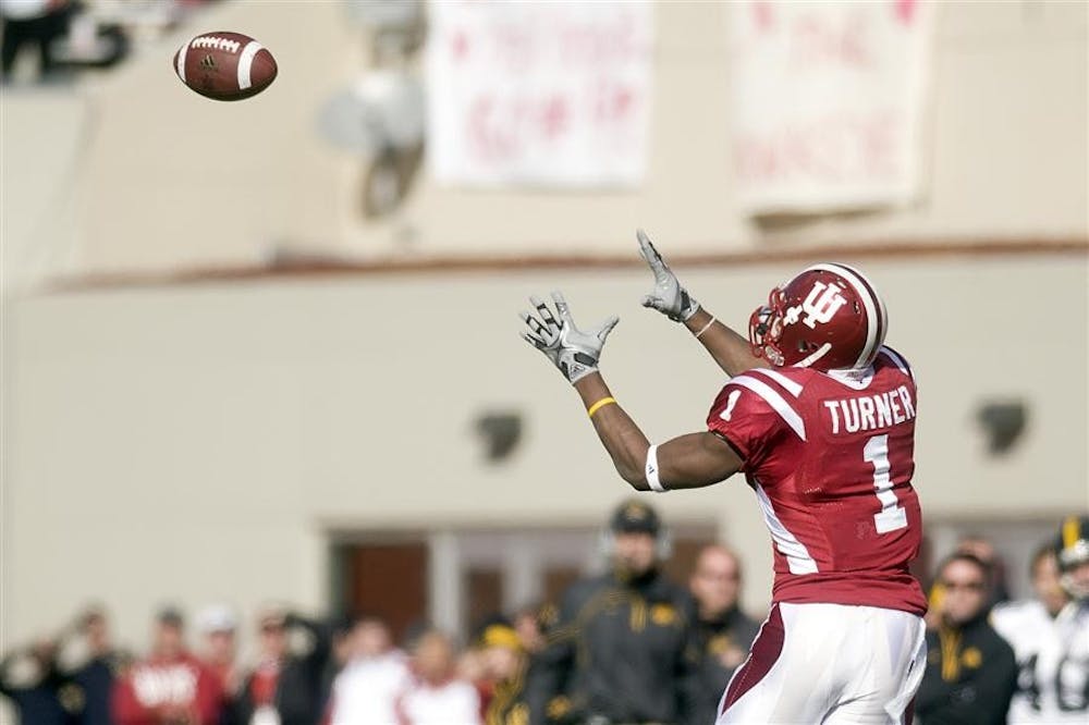 Senior wide receiver Terrance Turner makes a catch during IU's 18-13 loss to Iowa on Saturday at Memorial Stadium.