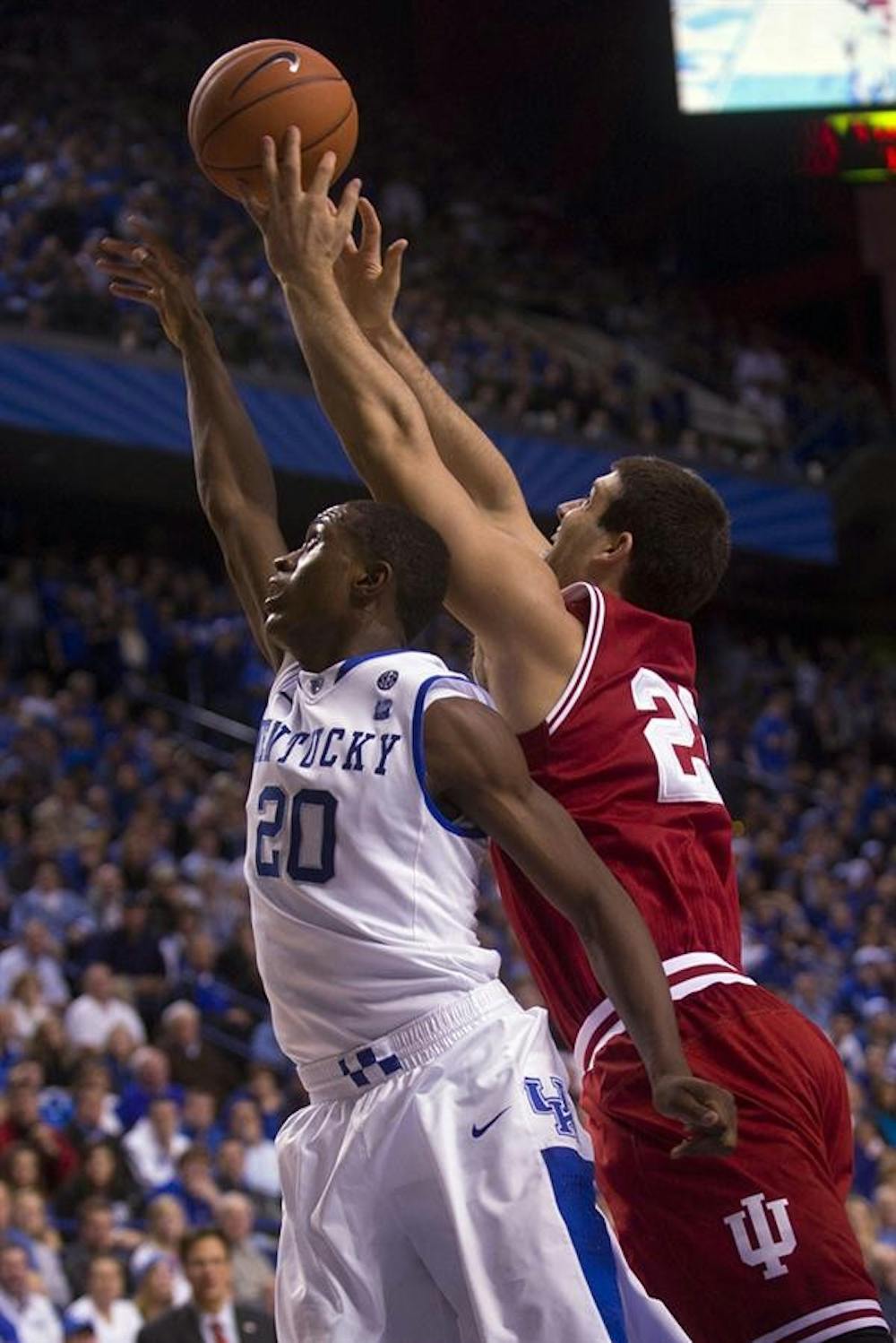 Sophomore forward Bobby Capobianco attempts to rebound during IU's 81-62 loss to Kentucky on Dec. 11 at Rupp Arena in Lexington, Ky. Peter Stevenson