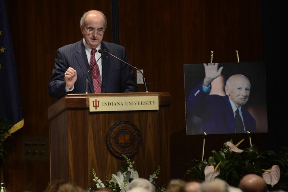 IU president Micheal A. McRobbie speaks during a memorial service for the late IU president John Ryan Friday at the Whittenberger Auditorium. Ryan was the president of IU for sixteen years. Steph Langan