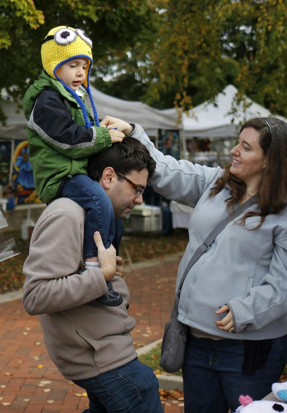 Matt and Elizabeth Martindale shop for a winter hat for their son. "We enjoy coming to the Farmer's market on Saturdays," Matt Martindale said.