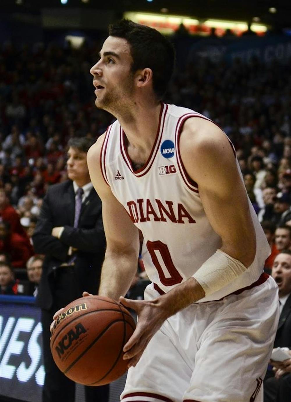 Junior forward Will Sheehey prepares to pass the ball during IU's 83-62 win against James Madison on Friday at the University of Dayton Arena. Steph Langan