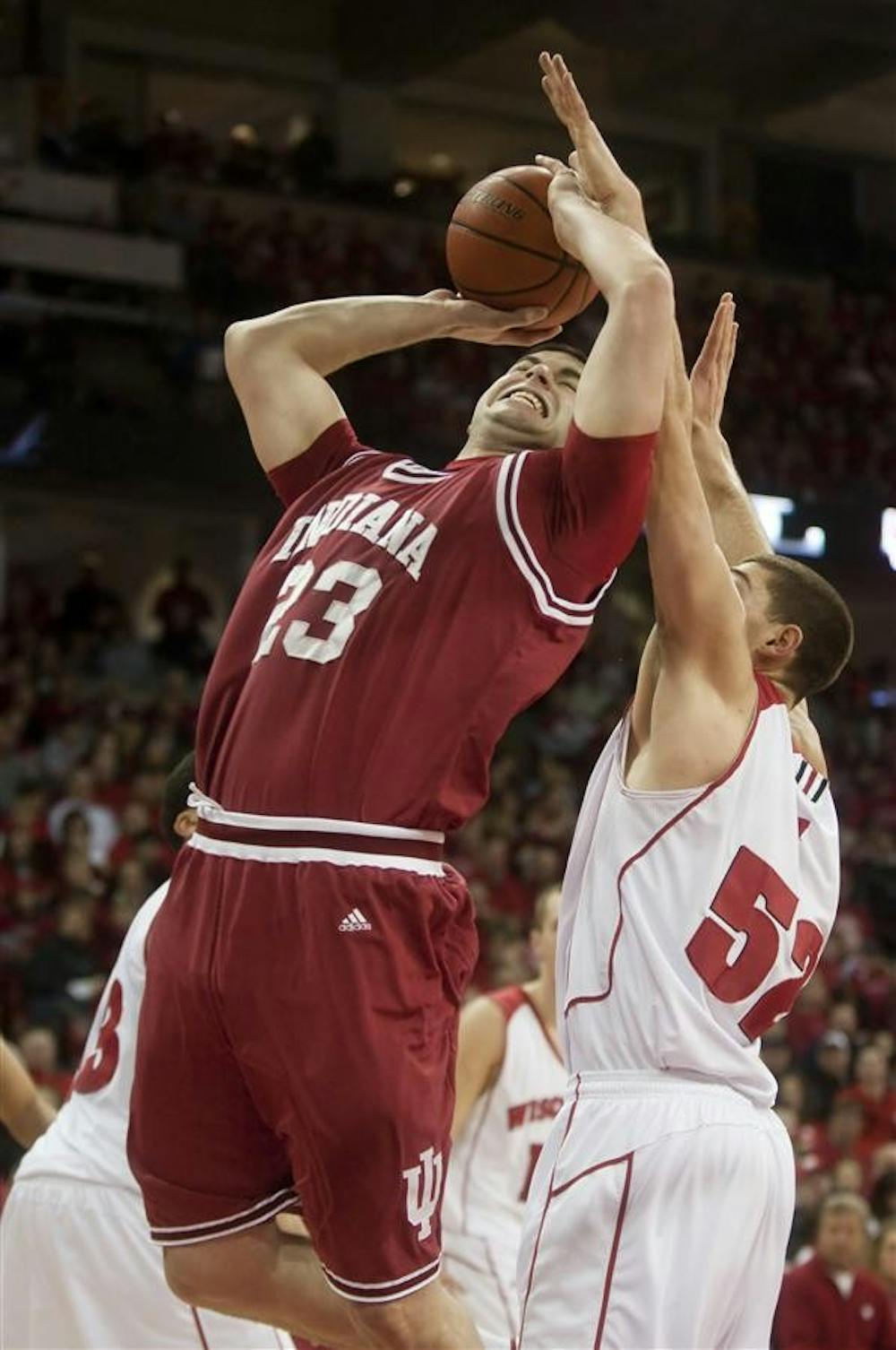 Freshman forward Bobby Capobianco attempts a layup during IU's 83-55 loss to Wisconsin Feb. 13 at the Kohl Center in Madison, Wisc. Peter Stevenson