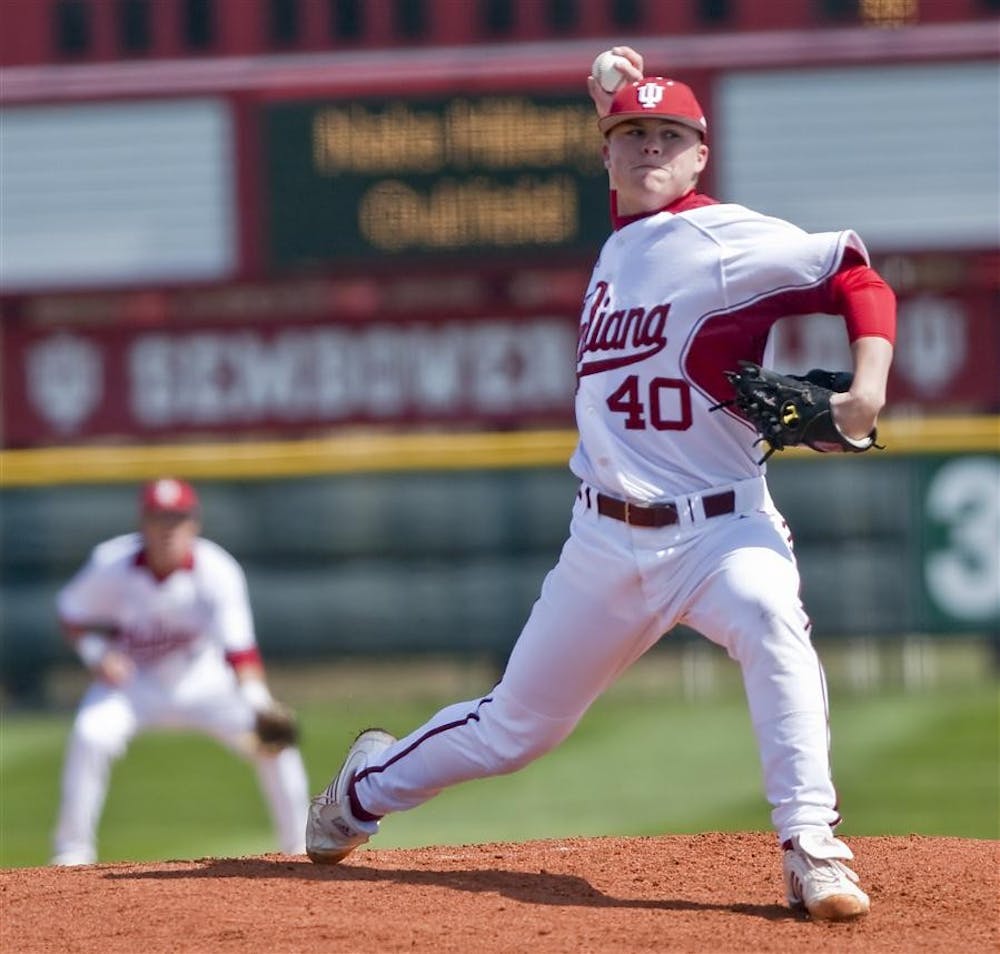 IU pitcher Mike McKinley throws during the Hoosiers' 7-3 win over Taylor University March 27 at Sembower Field. Peter Stevenson