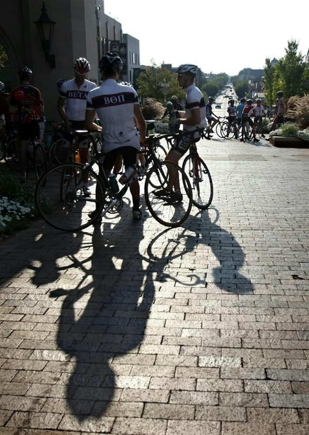 Beta Theta Pi cyclists wait for the beginning of the Wednesday World ride Wednesday at the Sample Gates. The Wednesday World ride allows cyclists to bike in a pack to various locations around the greater Bloomington area.