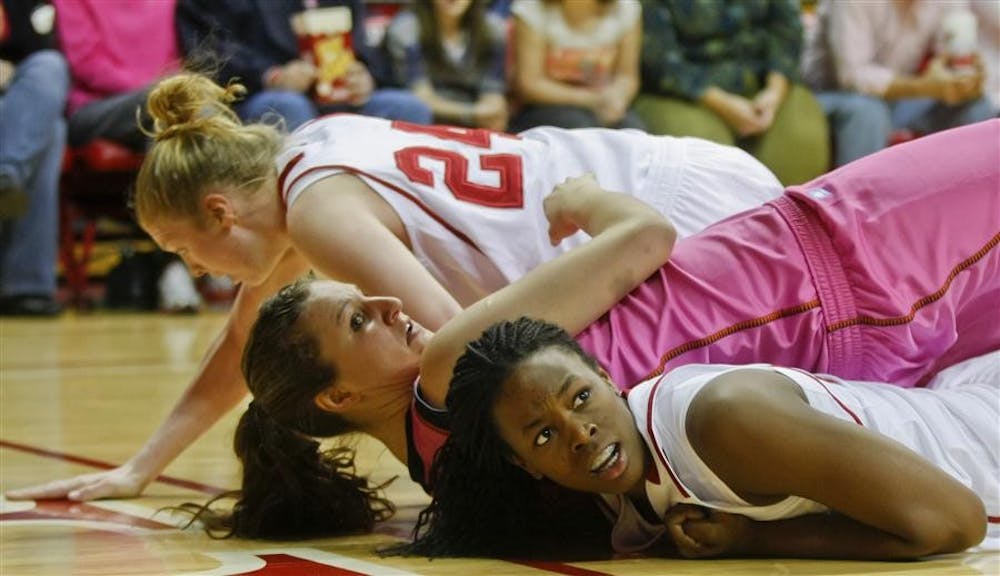Sophomore center Simone Deloach looks at a referee after going after a loose ball during IU's 61-60 loss to Illinois on Sunday at Assembly Hall. Mark Felix