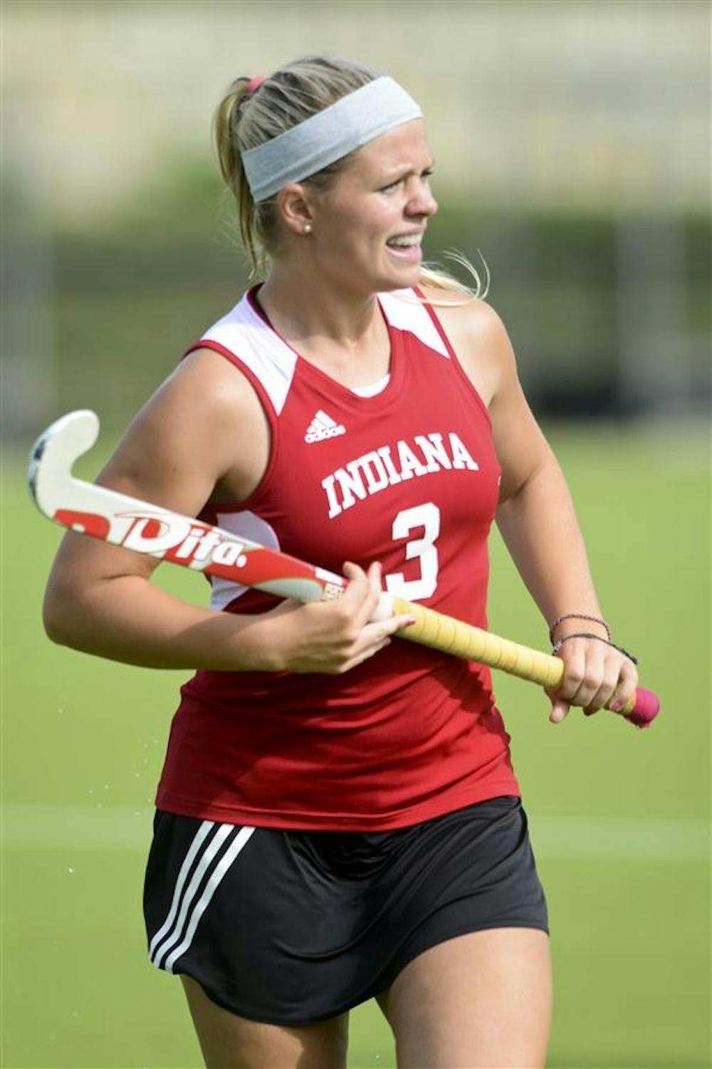 Sophomore Amanda Bennison runs down field during the Hoosiers' 5-1 win against Missouri State on Friday at the IU Field Hockey Complex. Steph Langan