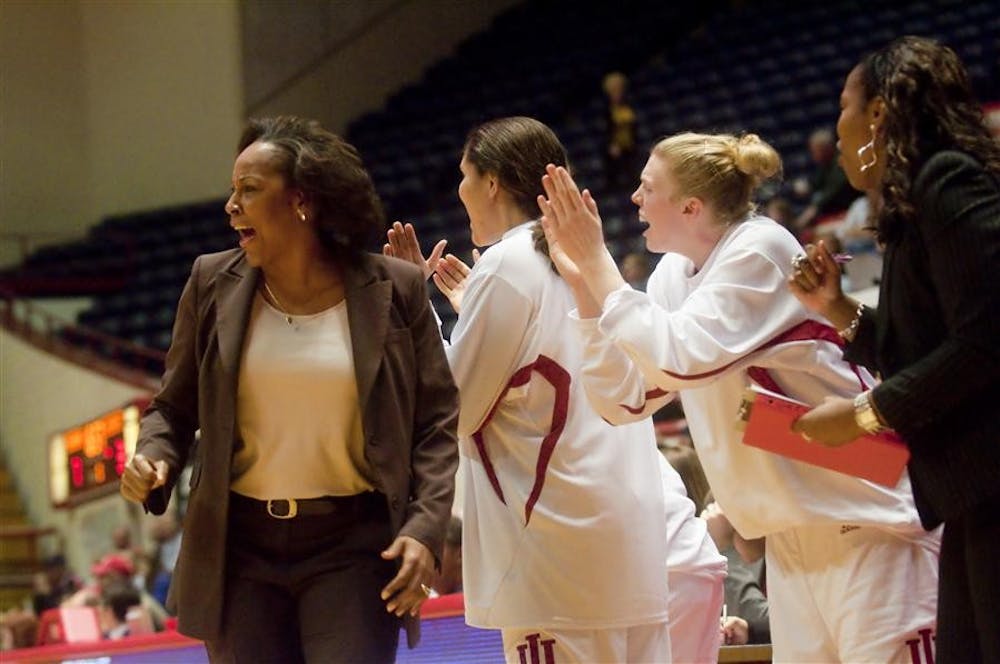 IU coach Felisha Legette-Jack and members of the women's basketball team cheer on the Hoosiers during the first half of Wednesday's game against Cincinnati at Assembly Hall. Peter Stevenson