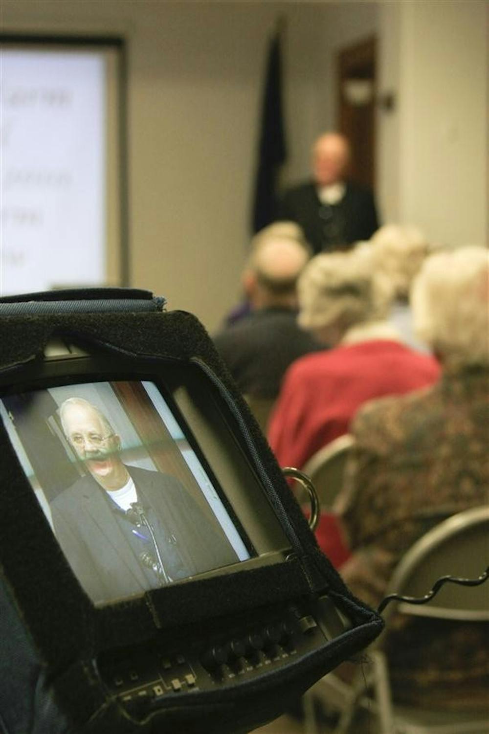 Joe Peden talks about life growing up on historic Maple Grove Road on Thursday at the Monroe County History Center. Peden was raised on his family's farm and in the 1960's his parents began inviting area schools to bring schoolchildren on day trips to learn about farm life. Peden and his wife have continued the tradition.