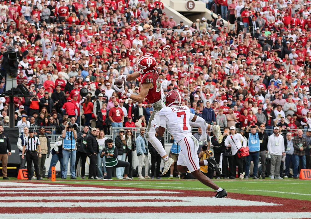Sophomore Charlie Becker makes a catch in the end zone during the CFP quarterfinal game against Alabama on Jan. 1, 2026, at the Rose Bowl Stadium in Pasadena, California. Becker had one touchdown in the game.