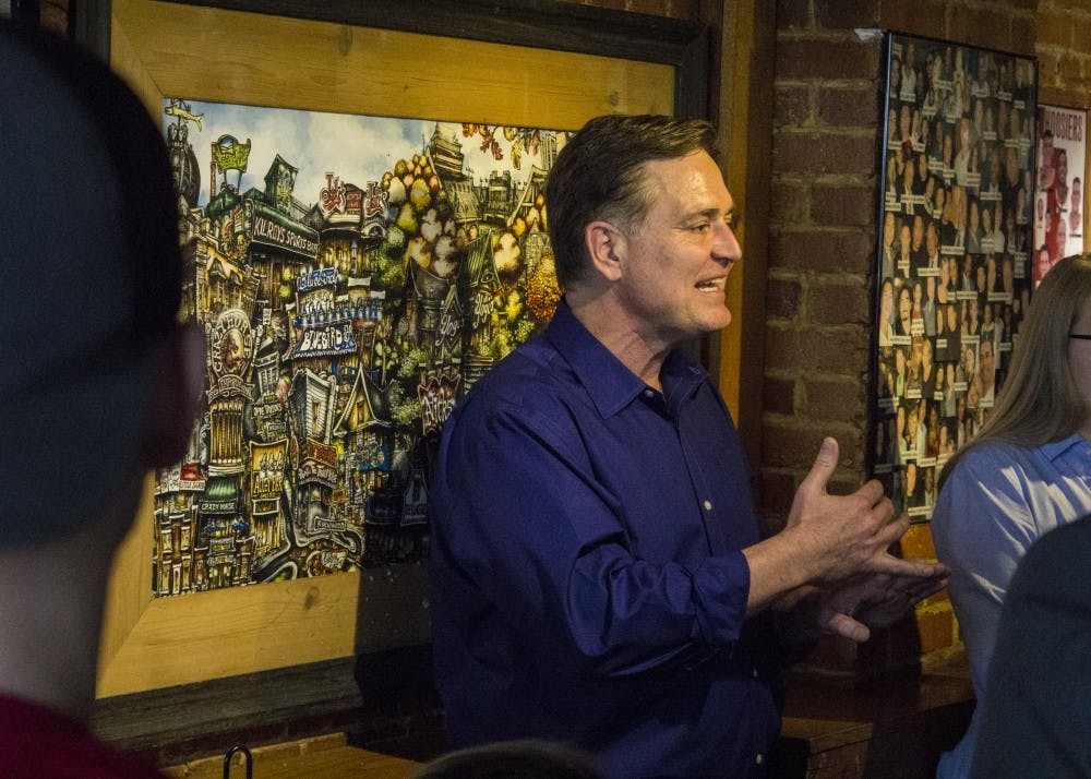 Republican Luke Messer talks to a crowd at BuffaLouie's on Saturday, April 7. Messer is currently campaigning for the U.S. Senate. Matt Begala