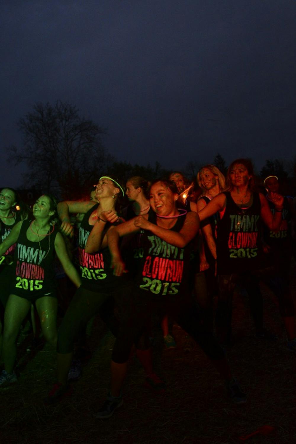 Participants dance at the pre-event party before the Glow Run hosted by Timmy Global Health at Dunn Meadow on Wednesday night. Tiantian Zhang and Tiantian Zhang