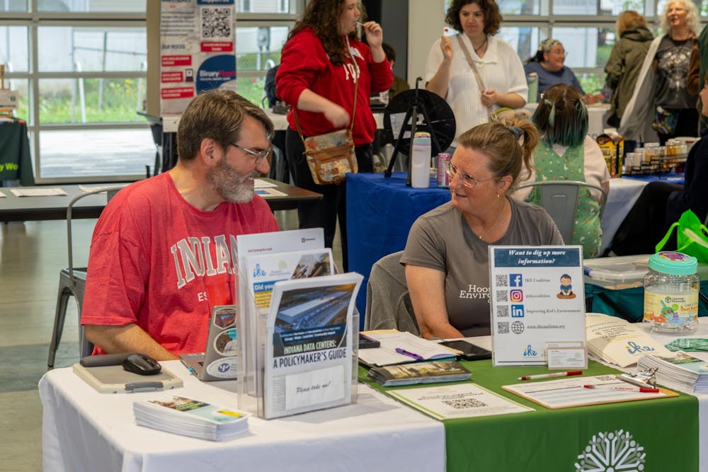The Improving Kids Environment Coalition vendor is pictured at the Earth Day event April 18, 2026, at Switchyard Park in Bloomington. The organization informed attendees on its goal of educating others as a way to keep children in healthy environments.