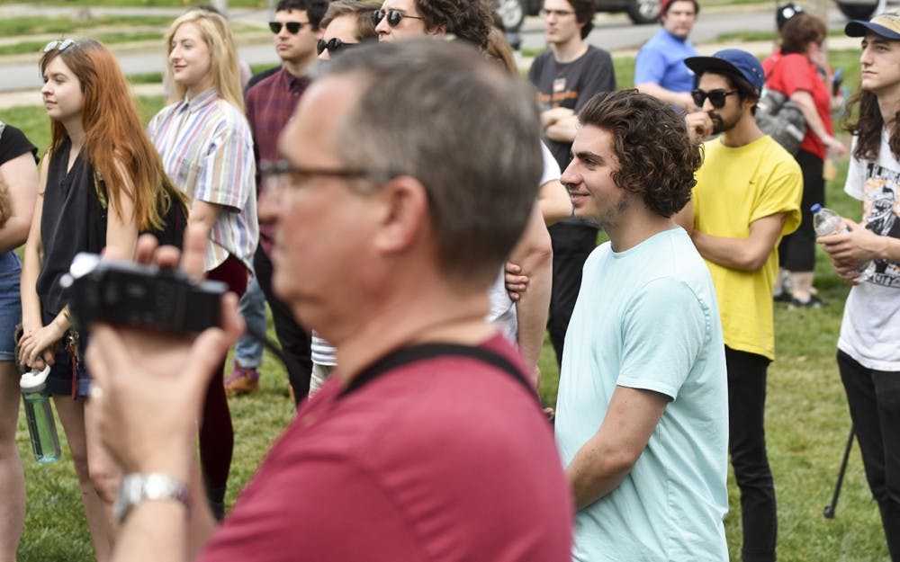 Fans gather along the guardrails to watch as local psych-pop band High Fiber opens during WIUX’s 2017 Culture Shock Music Festival Saturday afternoon in Dunn Meadow. The event featured artists such as Noname, SALES, and Post Animal. Andrew Williams and Andrew Williams
