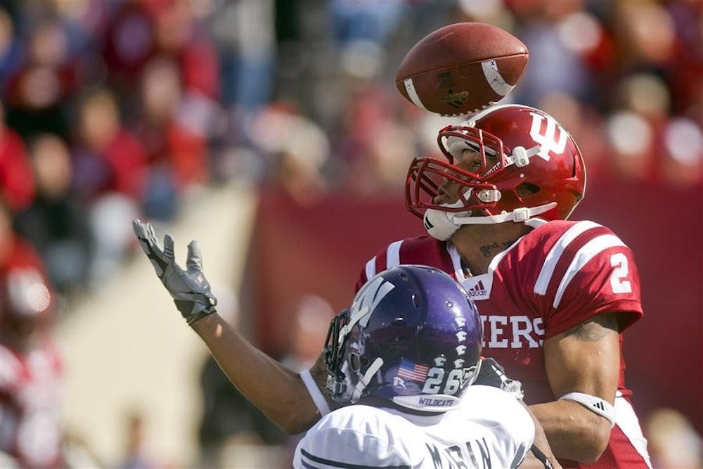 Junior wide receiver Tandon Doss is unable to catch a pass during the first half of IU's game against Northwestern on Saturday at Memorial Stadium. Peter Stevenson