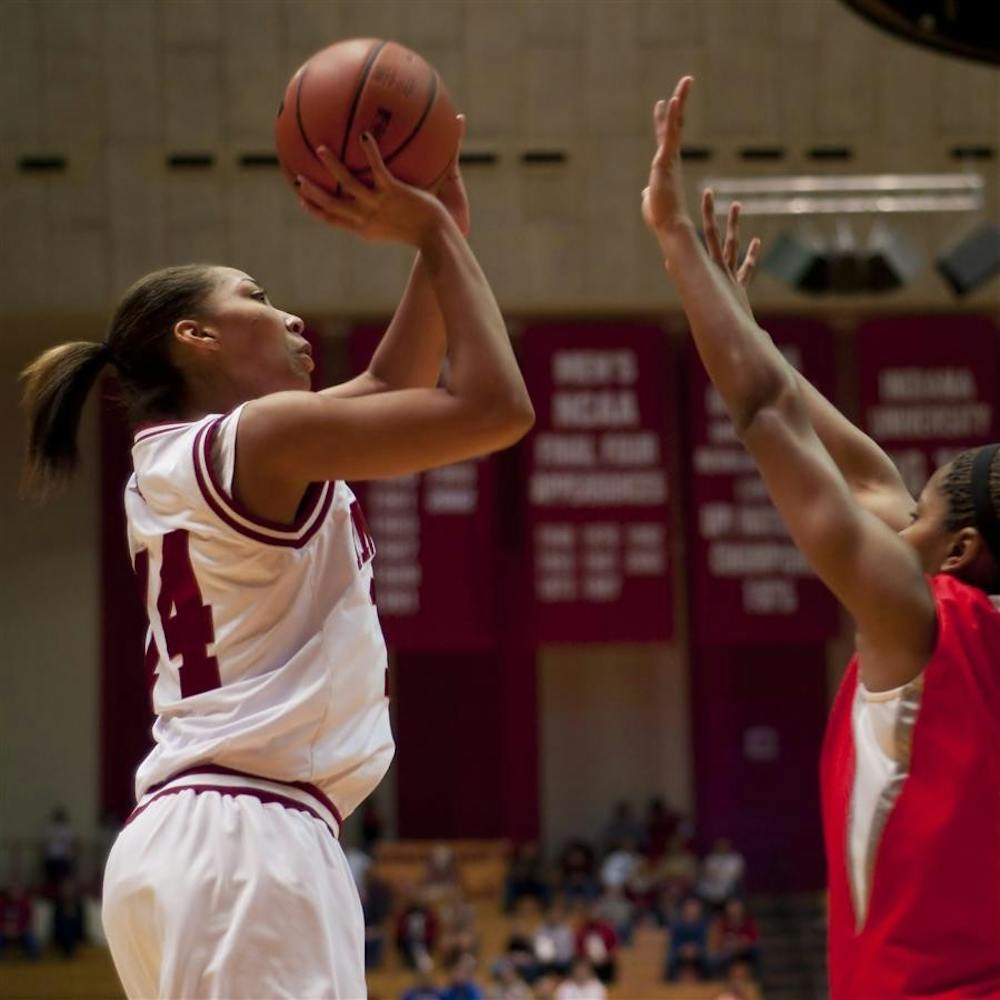 Junior forward Hope Elam shoots over Ohio State's Brittany Johnson during IU's 67-62 win over the No. 4 Buckeyes Jan. 31 at Assembly Hall. Peter Stevenson