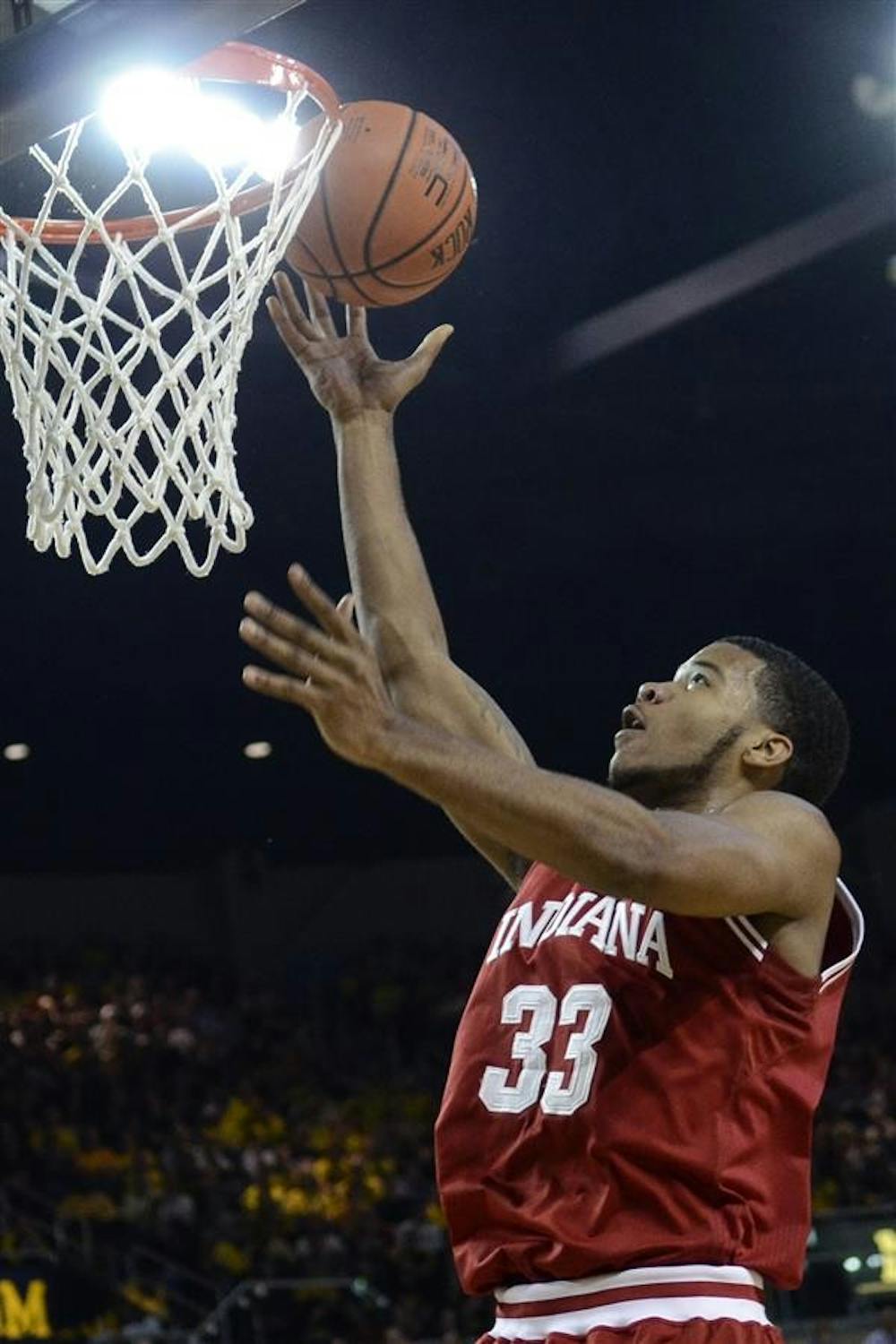 Freshman forward Jeremy Hollowell jumps up to score a basket during IU's 72-71 win against Michigan on Sunday at Crisler Center in Ann Arbor, Mich. Steph Langan