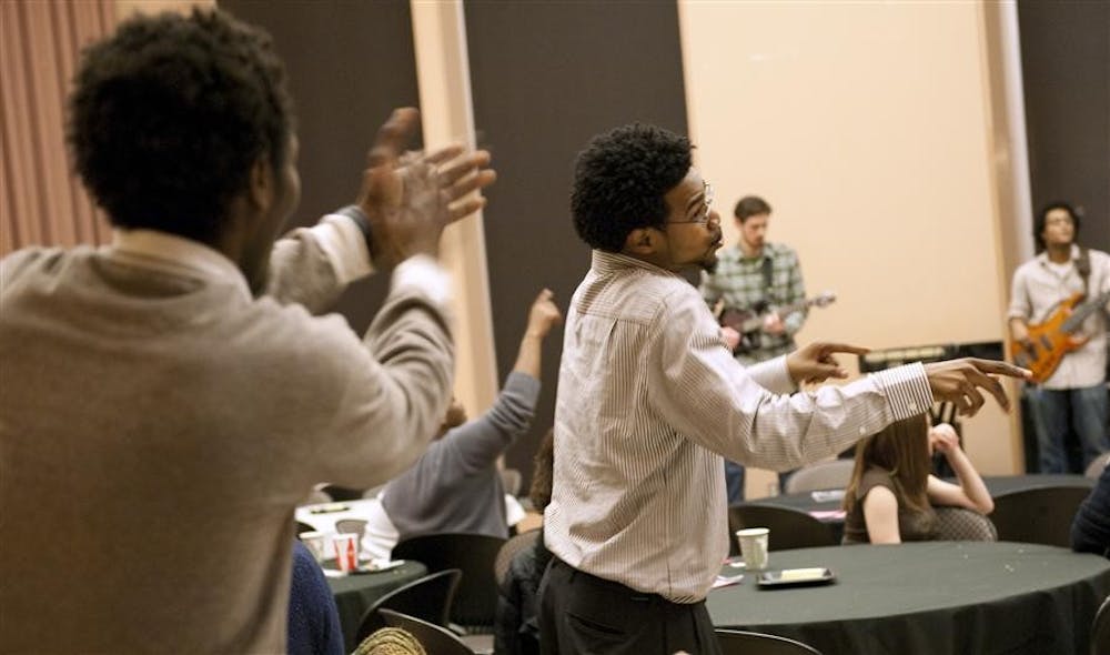 Justin Merrick, a member of the Black Graduate Association, dances to a hip hop medly played by Jip Jop at the Haiti Benefit dinner Wednesday evening. Merrick also preformed in the group 4Reign earlier in the evening. Stephanie Haberman