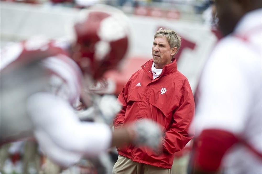 IU coach Bill Lynch looks on as the Hoosiers warm up before their game against Michigan Saturday at Memorial Stadium. Peter Stevenson