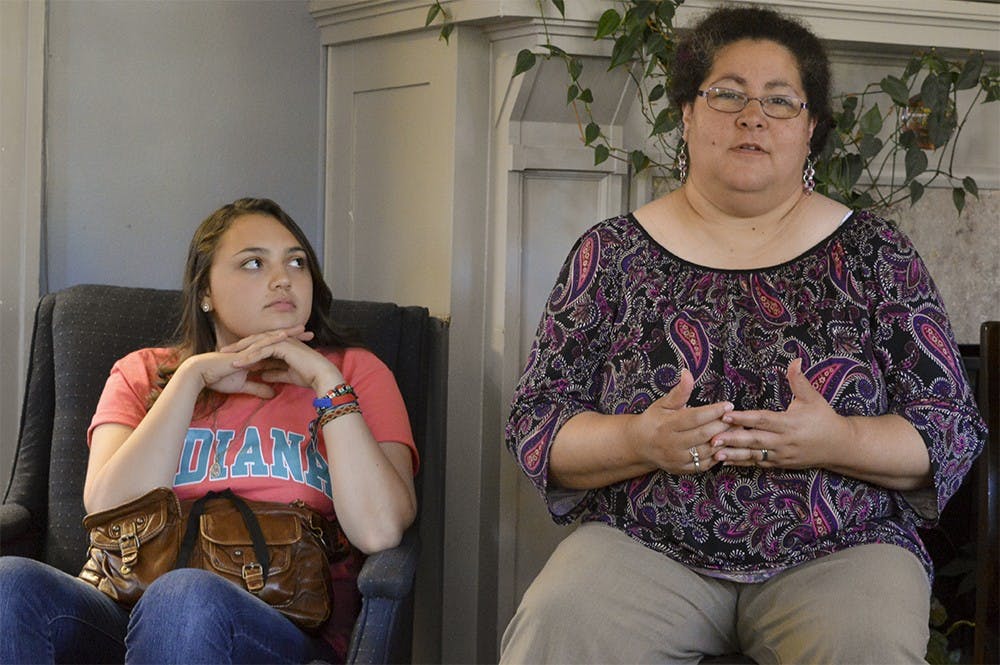 Hispanic students unite at La Casa Tuesday evening to discuss politics and Latino culture here at IU. Freshman Angelica Navarro listened closely as IU Alumni Maria Del Mar Carrasquillo explains Latino politics nd culture here on campus.