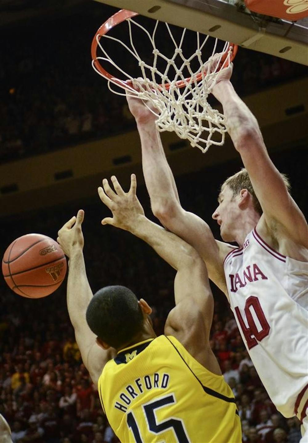 Sophomore forward Cody Zeller attempts to score a dunk, but misses, during the Hoosiers' 81-73 win against Michigan on Saturday at Assembly Hall.