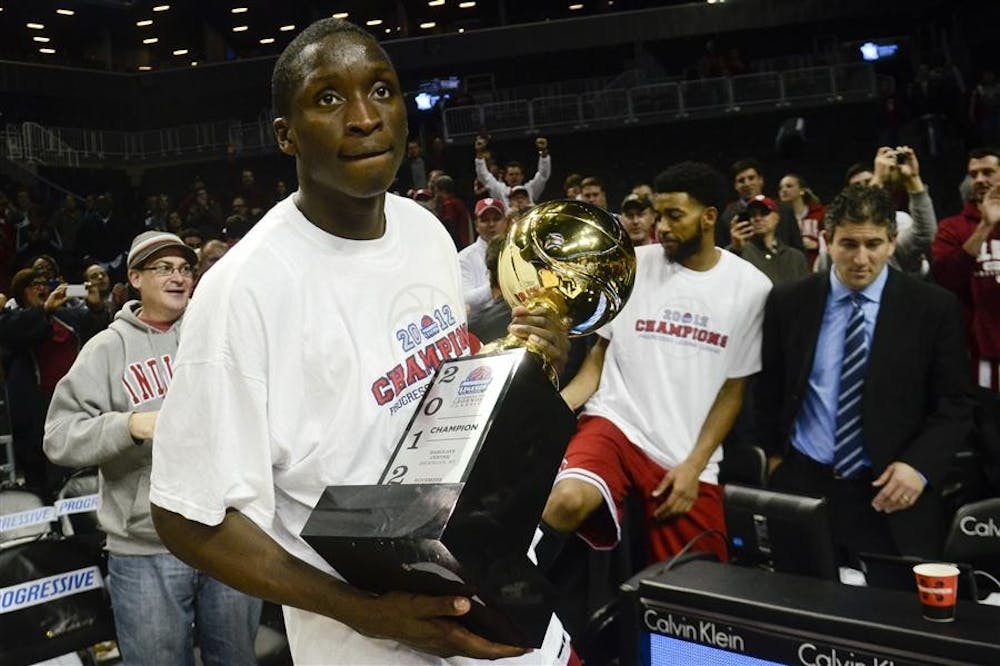 Junior Victor Oladipo hold the trophy as he looks out at the crowd at the Progressive Legends Classic at Barclays Center.
