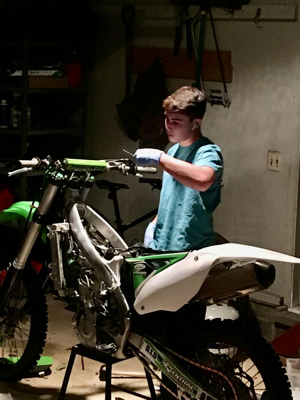Ben Wilson is pictured working on one of his motorcycles. Ben had four motorcycles, a BMW M4, a beat-up old truck and a dirt bike in his collection.