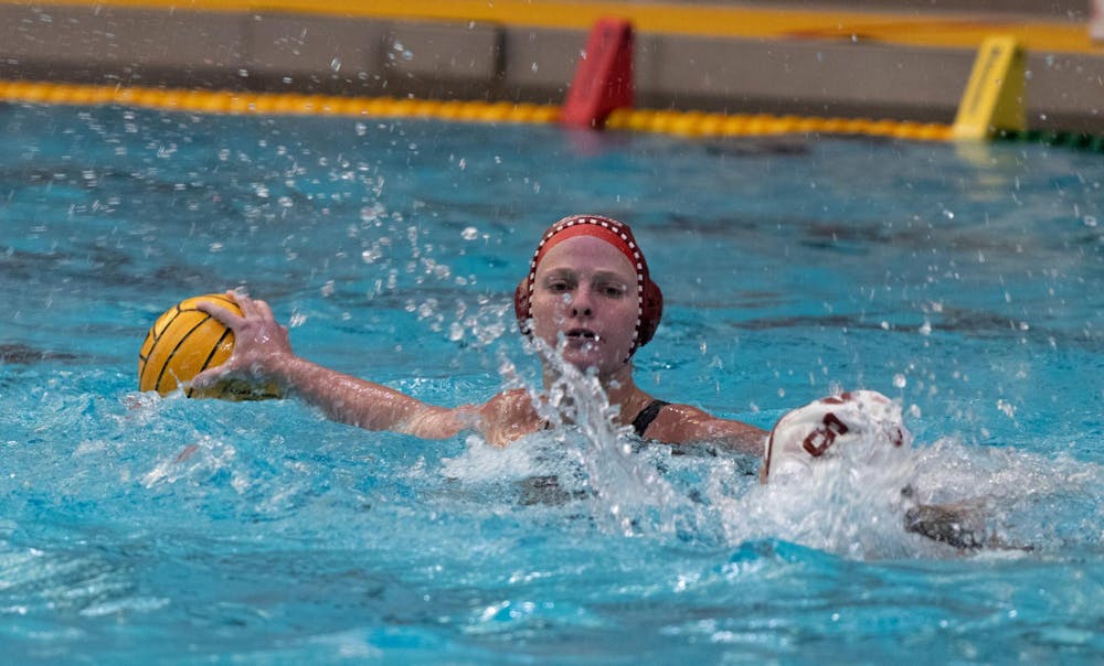 Sophomore attacker Morgan Schink holds the ball during a game against Stanford on March 28, 2026, at the Student Recreational Sports Center in Bloomington. Schink had one foul in the game. Manasvi Doshi