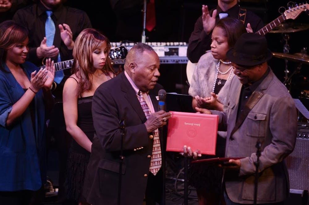 Soul and R&B musician Booker T. Jones smiles as he accepts awards from IU Soul Revue and the Neal Marshall Black Culture Center, Friday at the Buskirk-Chumley Theather. Jones is an IU alumnus and a Grammy Lifetime Achievement award winner.