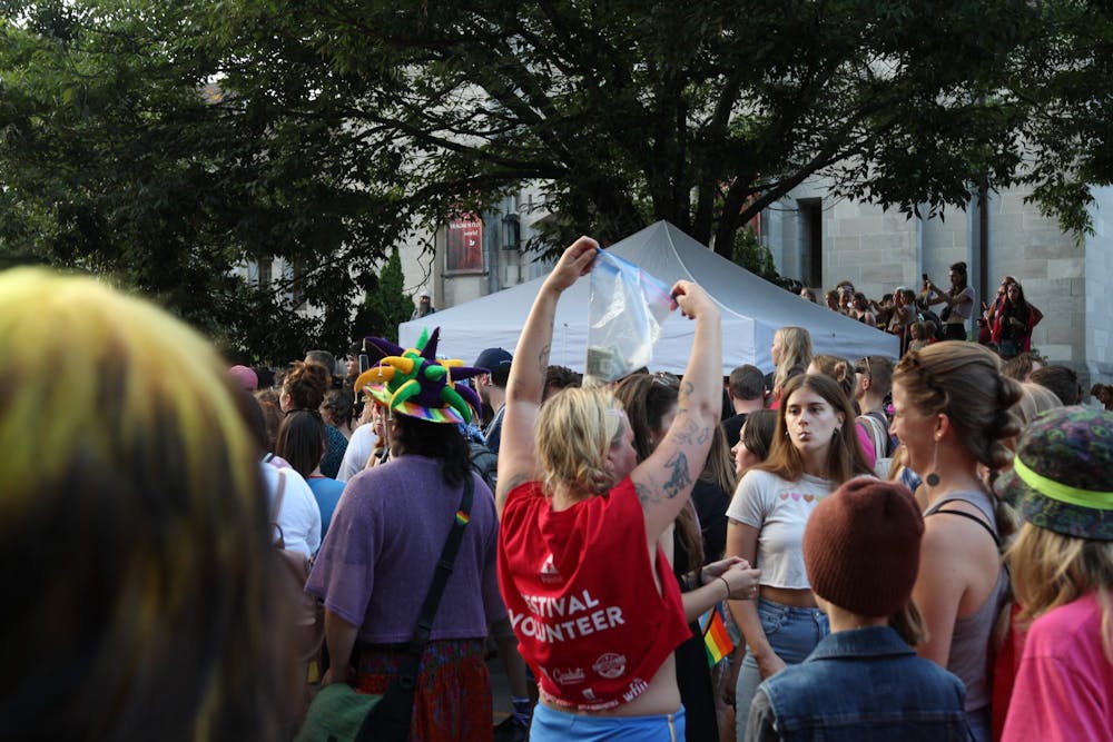 A festival volunteer walks through the crowd collecting tips for the performers Aug. 27. Crowd members continuously donated to the performers throughout the night.