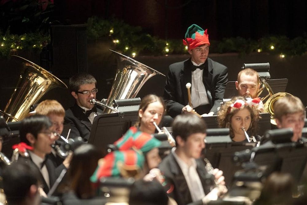 Timpanist Erich Rieppel performs with the Wind Ensemble during Chimes of Christmas on Wednesday at the IU Auditorium.