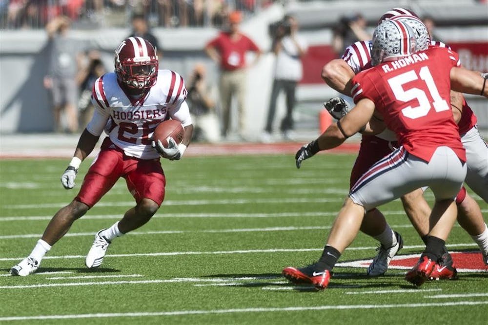 Freshman running back Nick Turner looks for a gap in the Ohio State line during IU's game against the Buckeyes Saturday in Columbus, Ohio. Peter Stevenson