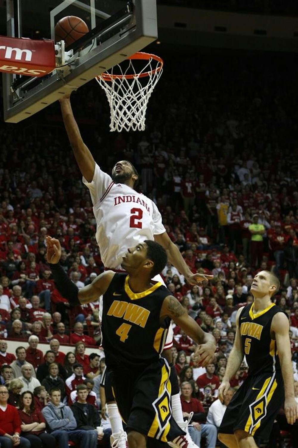 Junior forward Christian Watford performs a lay-up during IU's 103-89 win against Iowa on Sunday at Assembly Hall.
