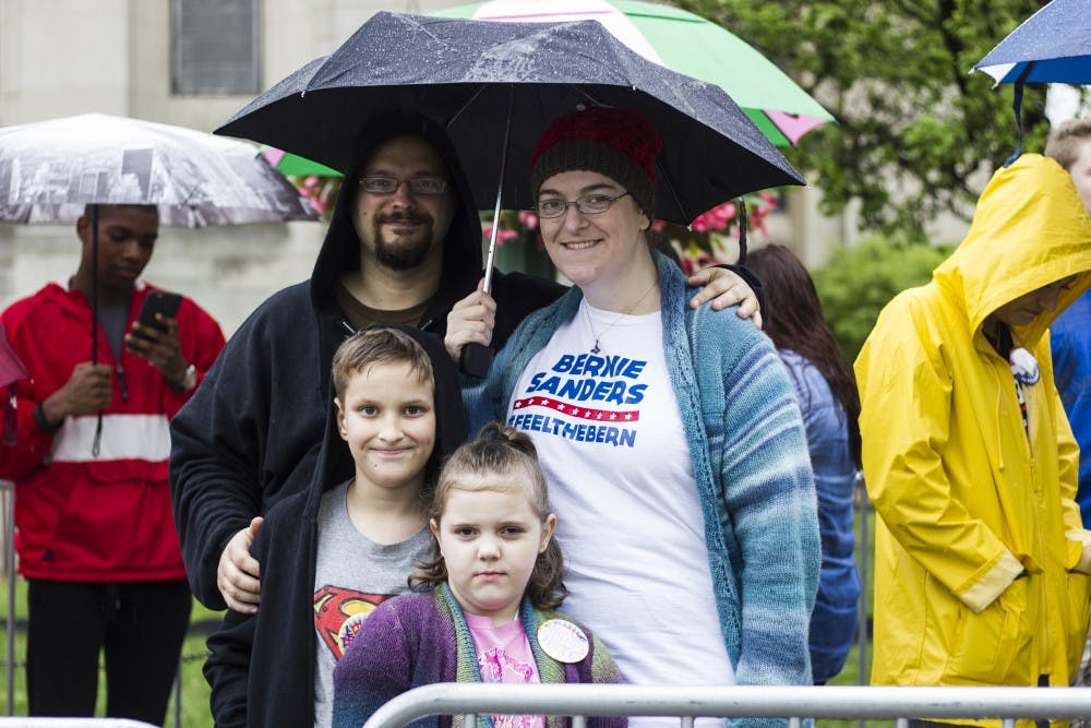 Jennifer Blythe stands in line with her family at a Bernie Sanders rally Wednesday. The Blythe's waited over six hours to secure good seating. Victor Grössling and Victor Grossling and Victor Grossling