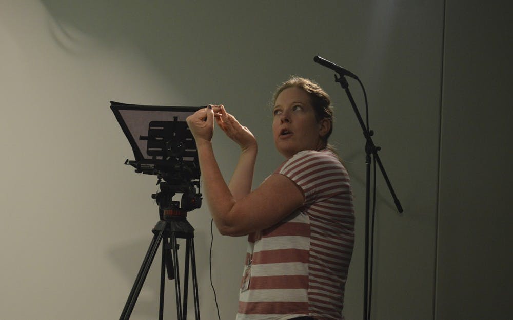 Jeannette Lehr leads a group through a disscussion and hands-on experience with the video production equipment at the Monroe County Library Thursday evening. This workshop is part of the Level Up series held every Thursday at the library.
