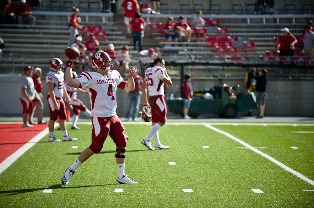 Senior quarterback Ben Chappell warms up before IU's game against Ohio State on Saturday at Ohio Stadium in Columbus, Ohio.
