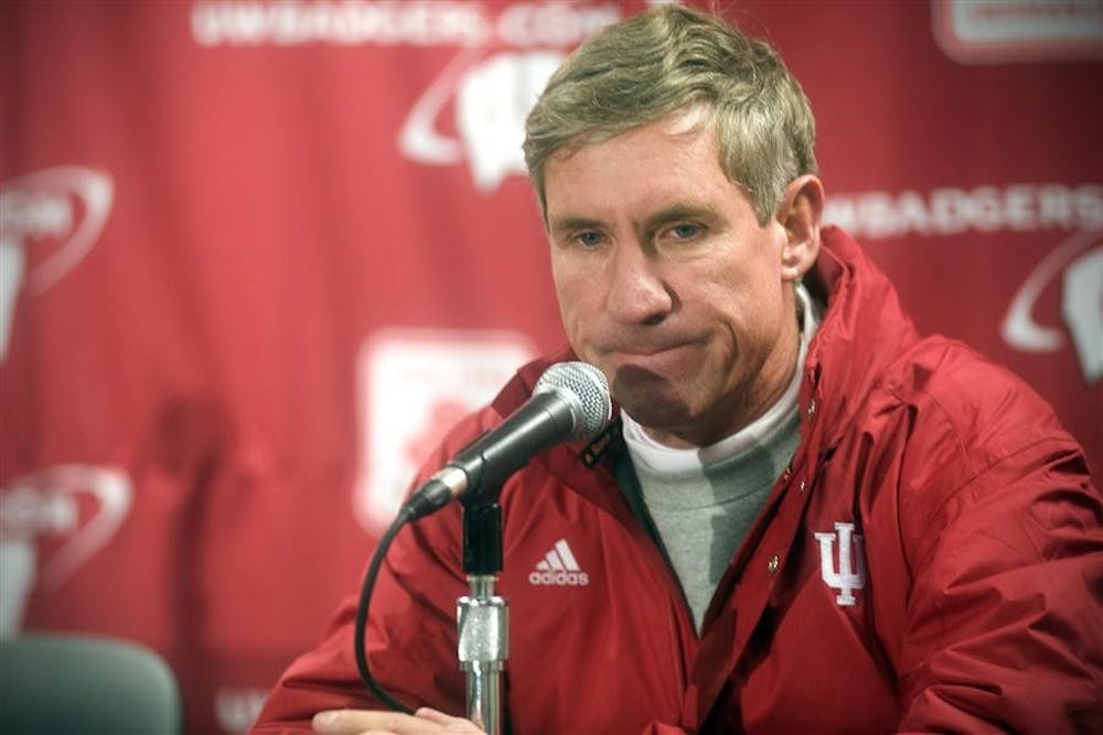 IU coach Bill Lynch reflects on IU's 83-20 loss during a postgame press conference on Nov. 13 at Camp Randall Stadium in Madison, Wis. Peter Stevenson