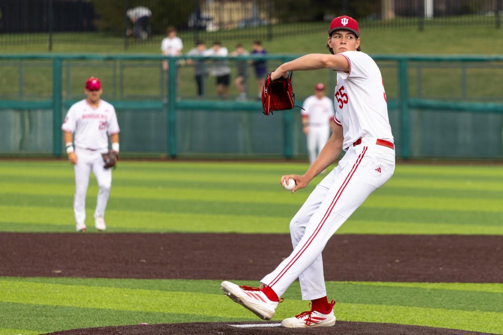 Freshman right-handed pitcher Kellen English throws the ball during the game against Wright State University on March 10, 2026, at Bart Kaufman Field in Bloomington. English pitched for one inning. Briana Pace