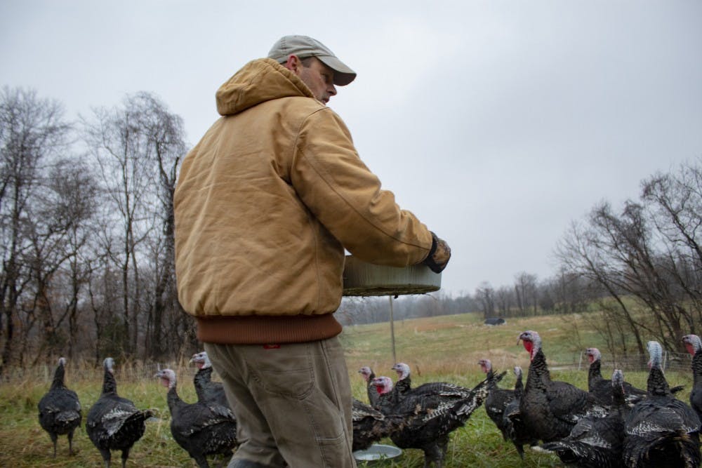 Larry Howard sets out water for the turkeys Nov. 15. Haley Klezmer