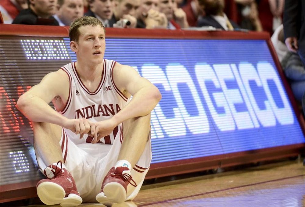 Sophomore forward Cody Zeller sits while waiting to go in as a substitution during the Hoosiers' 64-59 loss to Wisconsin on Tuesday at Assembly Hall. Steph Langan