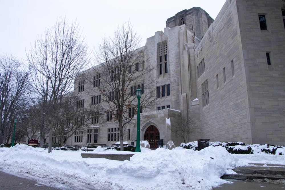 Woodburn Hall is pictured Jan. 31, 2026, at 1100 E. Seventh St. in Bloomington. Snow on sidewalks in Bloomington made it difficult for students to walk to class last week.