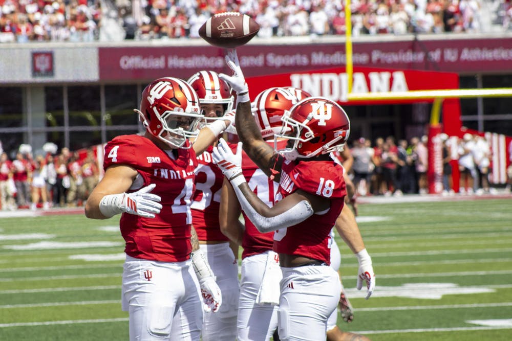 Graduate student running back Solomon Vanhorse tosses a ball during a game against Kennesaw State University on Sept. 6, 2025, at Memorial Stadium in Bloomington. Vanhorse had one rush for three yards in the game. Jimmy Rush