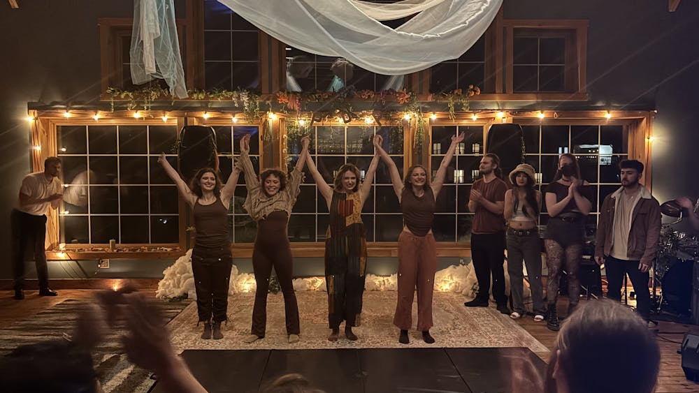 Dancers at the POP Production take a bow after the live show April 12, 2025, at The Fields apartment complex in Bloomington. The immersive experience was created and directed by IU senior Maxime Werk. Arnaav Anand