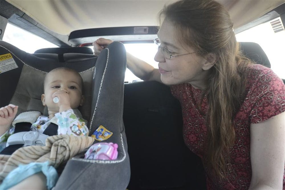 Jody smiles at Willa as they ride in their station wagon with Jim on their way to Willa's final proton treatment. Jody always sits in the backseat with Willa when the family rides in the car. Willa has digestive problems, so Jody sits with her in order to keep the closest eye possible on her in case she gets sick.