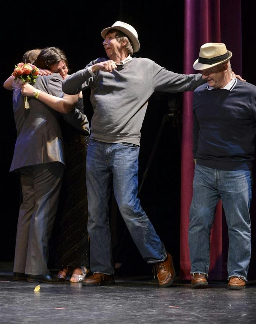 Glenn Lassiter dances after having his partnership with Jim Doud officiated in Bloomington's Mass LGBTQ Wedding on Thursday evening at the Buskirk-Chumley Theater. The wedding kicked off the 2013 Pride Festival and was officiated by Mayor Mark Kruzan.