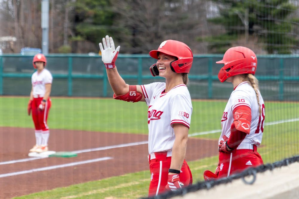 Junior utility player Alex Cooper waves to the crowd before her at-bat during the game against Minnesota on March 7, 2026, at Andy Mohr Field in Bloomington. Cooper was named the No. 13 shortstop in Softball America’s March Position Power Rankings.