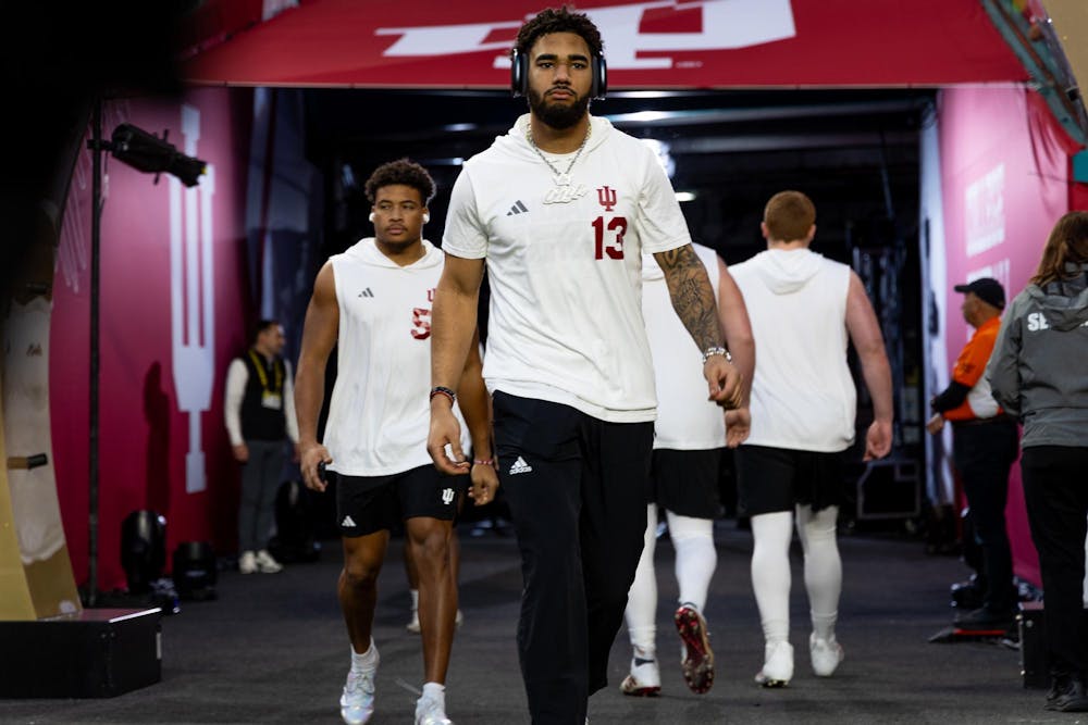 Senior wide receiver Elijah Sarratt walks onto the field before the national championship game against the University of Miami on Jan. 19, 2026, at Hard Rock Stadium in Miami Gardens, Florida. Sarratt had three receptions in the game.